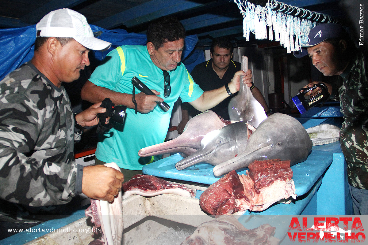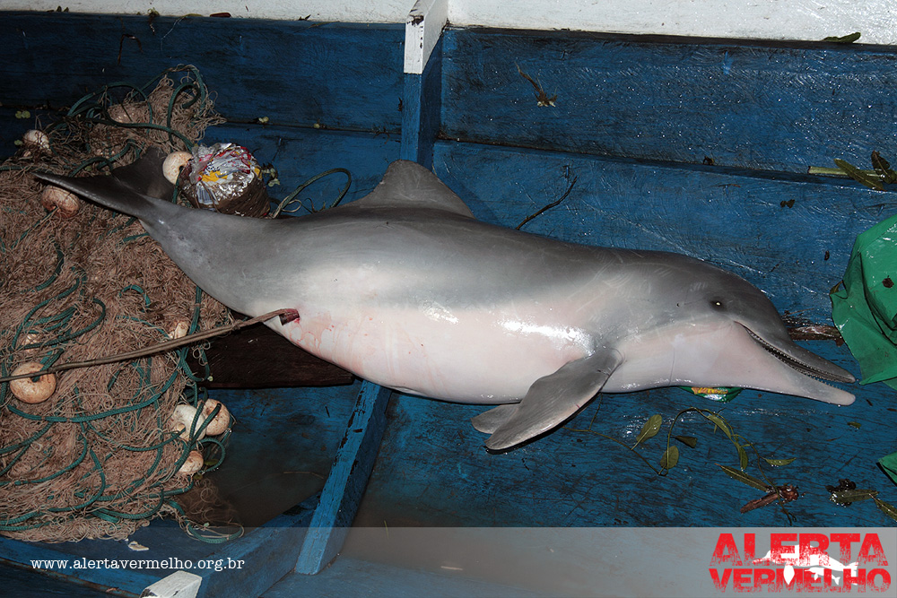 Esses golfinhos estão sendo mortos para servirem de isca na pesca de um bagre carniceiro, localmente conhecido por Piracatinga ou Urubú-d’água; mas, são vendidos com o nome falso de douradinha, no Brasil, e capaz, na Colômbia; enganando os consumidores. Toneladas de Piracatinga são capturadas anualmente com carne de Boto e o volume desse pescado no mercado brasileiro vem aumentando exponencialmente, nos últimos anos.