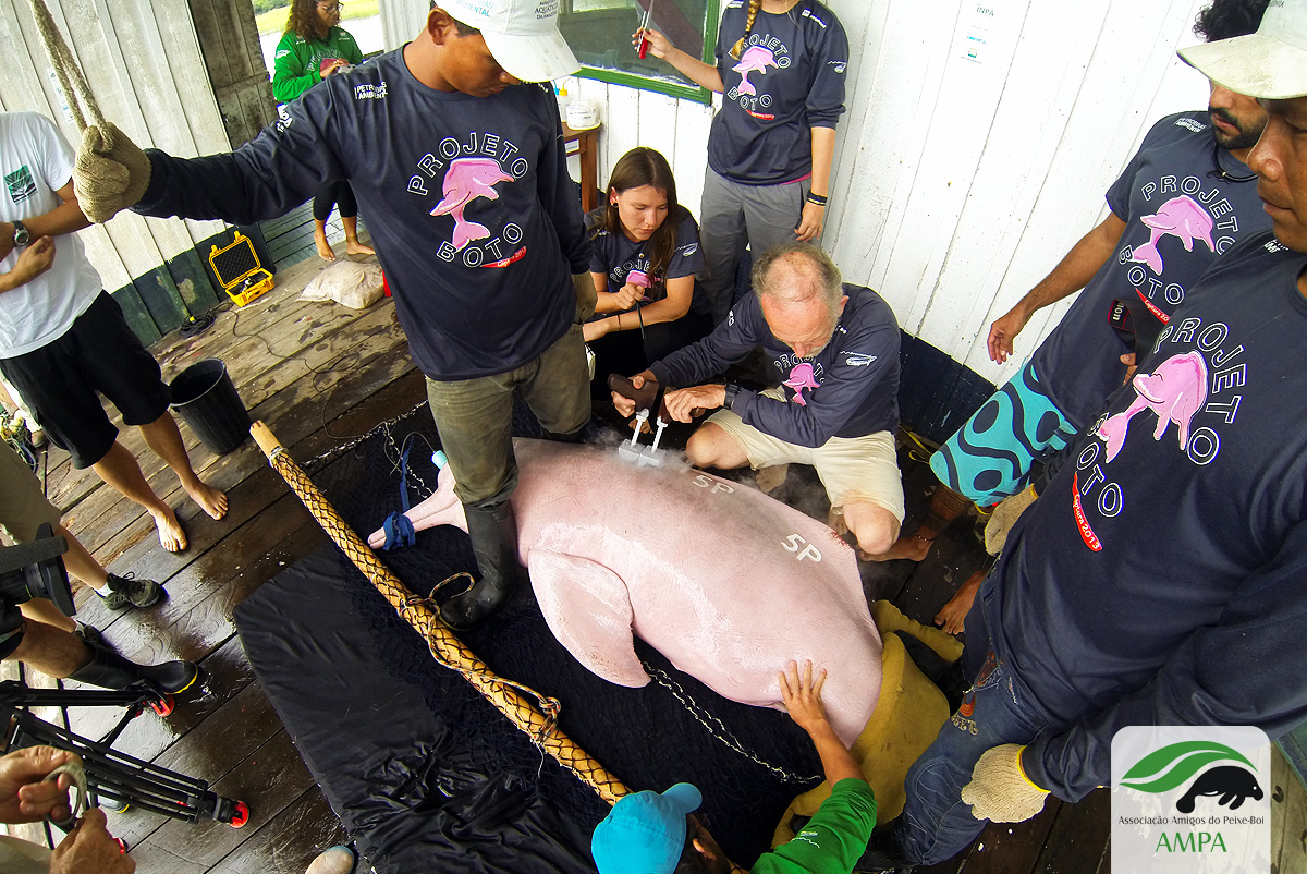 O Boto-vermelho ou Boto cor-de-rosa (Inia geoffrensis) é o maior golfinho de água doce do Planeta, pode viver até 50 anos, mas as taxas reprodutivas baixas, o longo período de cuidado parental, aliada a ameaça sem trégua dos caçadores/pescadores ilegais, têm fragilizado a espécie.